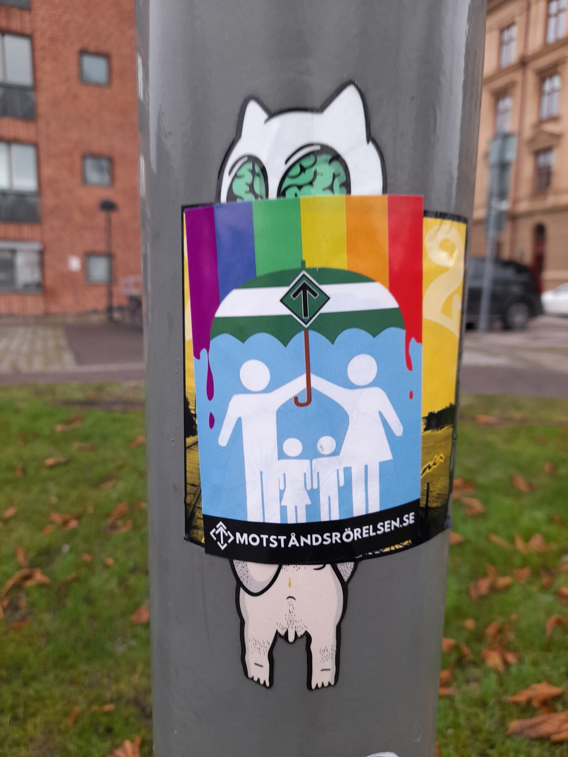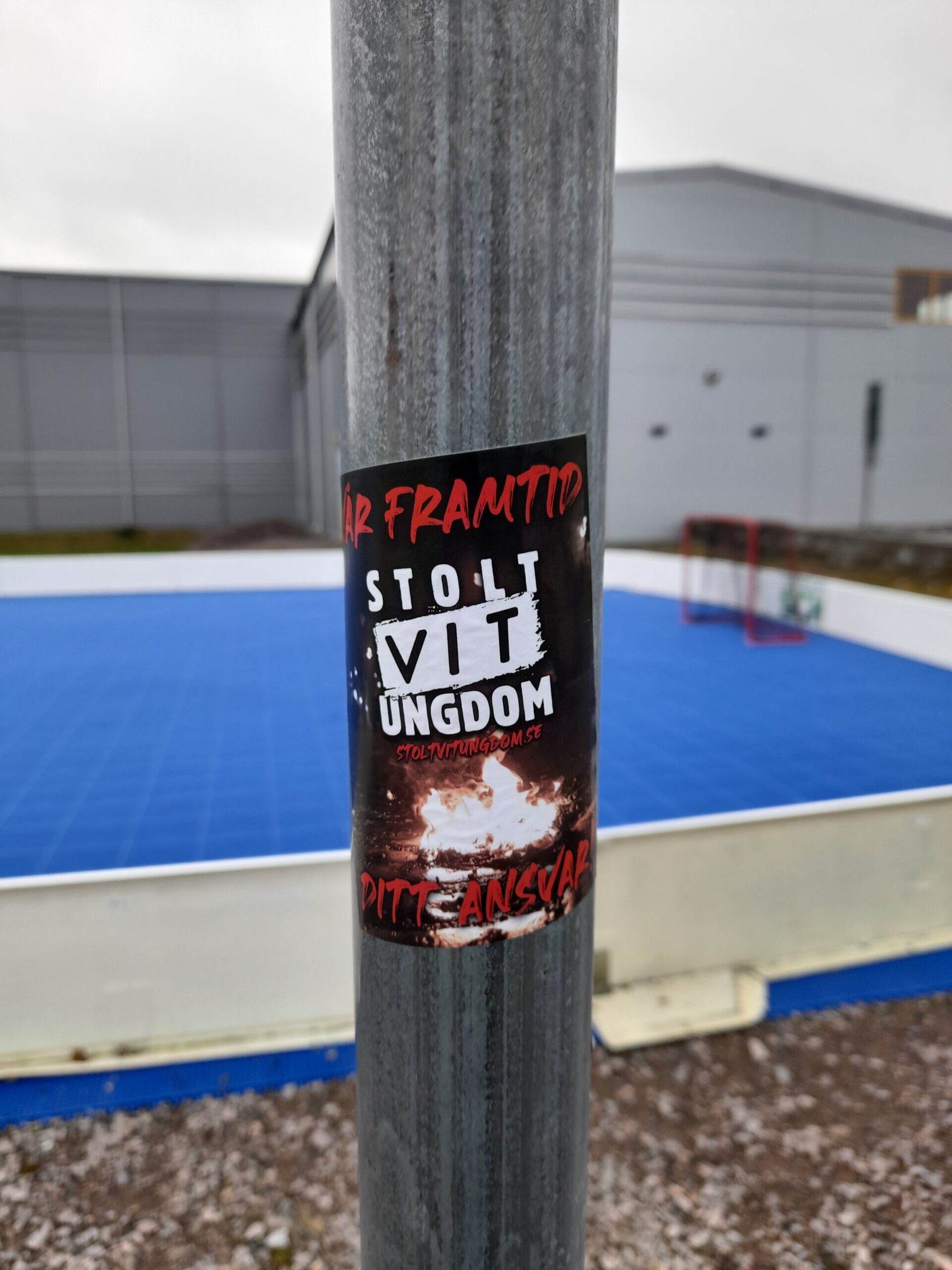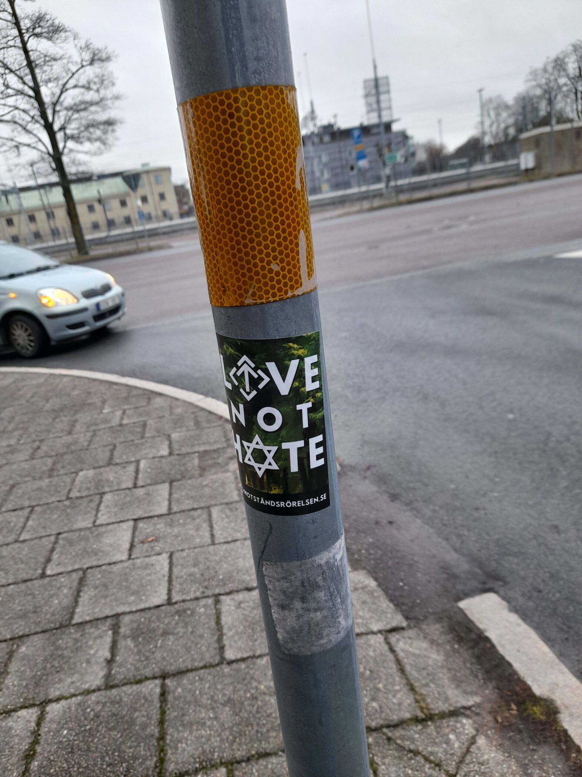 Den 15 december sattes det upp klistermärken i centrala Karlstad.
