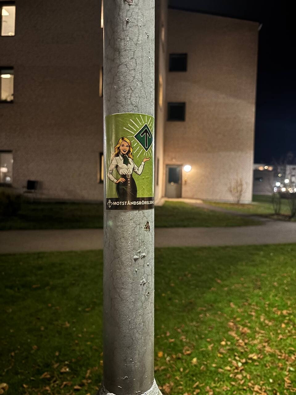 Sprejningar och klistermärken i Karlskrona Under måndagen den 20 oktober placerades det ut ett flertal klistermärken samtidigt som det sprejades propaganda runtom i Karlskrona.