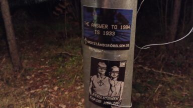 Kvällen den 8 juni var Näste 1 ute i Stockholms Norrort och satte upp ”Stolt vit ungdom”-klistermärken på och omkring en handfull gymnasieskolor.