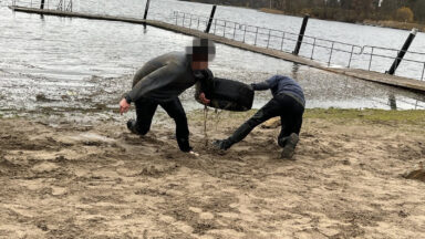 En stund in på aktiviteten, kom en polisbil farandes med blåljusen påslagna i motsatt riktning. Att se polis på utryckning är inget lustigt i sig, men när bilen syntes svänga av på en närliggande avfart och strax därpå kom körandes på cykelbanan vilken leder upp till den bro där motståndsmännen stod, fortfarande med blåljus på som om det skett något allvarligt, fick det deltagarna att dra på smilbanden.
